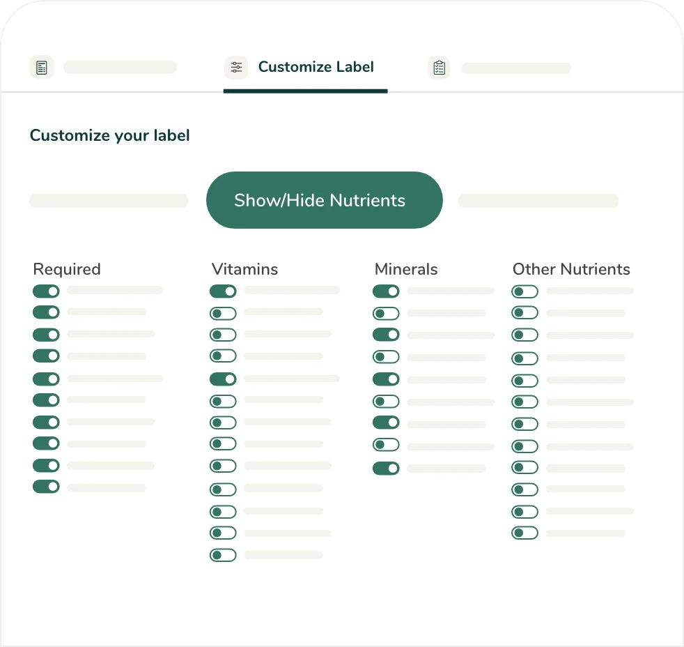 The ability to show or hide any nutrient, vitamin, or mineral guarantees your business meets evolving regulatory mandates while strategically highlighting key nutritional advantages for your customers.