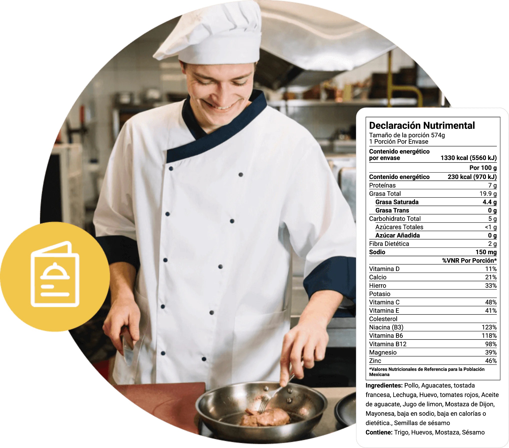 Etiquetas de diseño profesional adaptadas a los servicios alimentarios, que incluyen paneles nutricionales, declaraciones de ingredientes, alérgenos y logotipos.
